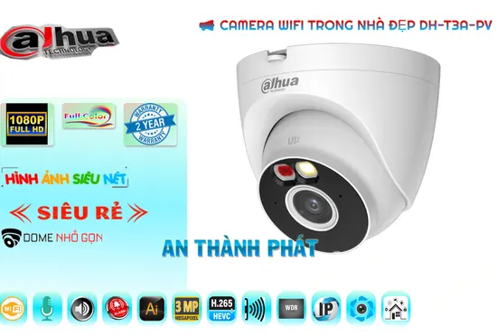 Loại Camera DH-T3A-PV là camera dome trong nhà 3MP Fixed-focal Wi-Fi Turret Network Camera Cảm biến CMOS 3MP 1/2. 8 3MP (2304×1296) Công nghệ giám sát ban đêm Full Color 30m chắc chắn mọi khía cạnh trung thực và rõ ràn phù hợp với nhu cầu giám sát ban đêm hiệu quả.