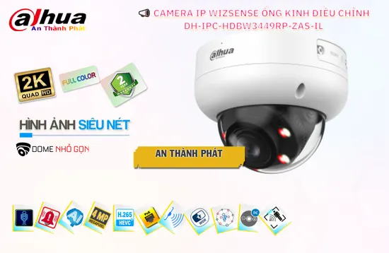 Camera DH-IPC-HDBW3449RP-ZAS-IL là loại camera có độ phân giải 4MP @1/2. 9" CMOS cảm biến hình ảnh Tiêu cự thay đổi 2. 7 mm–13. 5 mmánh sáng kép cho chất lượng hình ảnh tốt ban đêm